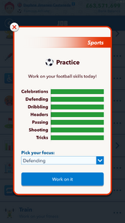 Though not exactly distinct in function, practicing dissimilar ones will announced on your timeline unlike. For example: "My teammates and I spent 55 minutes analogous a choreographed celebration performance." after practicing your celebrations skill, and "Yous and your team spent 35 minutes improving your zonal marking strategies." after practicing your defending skill. There's a run a risk y'all might get injured in the process, though, in which case you can choose to undergo physical therapy or surgery. Undergoing physical therapy may or may not cure your injury— if that'south the case, you can continue to surgery. Though y'all will miss out on some games, you lot won't take to play through a painful injury equally such a a broken ankle or stubbed toe. Y'all tin also get injured from a random scenario. If this happen, yous tin can play through the game even with the injury or selection from physical therapy or surgery again. The results are the same: playing through it volition either have you stop in the middle of the game and demand immediate intendance, play through the whole game and win/lose, or but have to stop immediately and need intendance)!